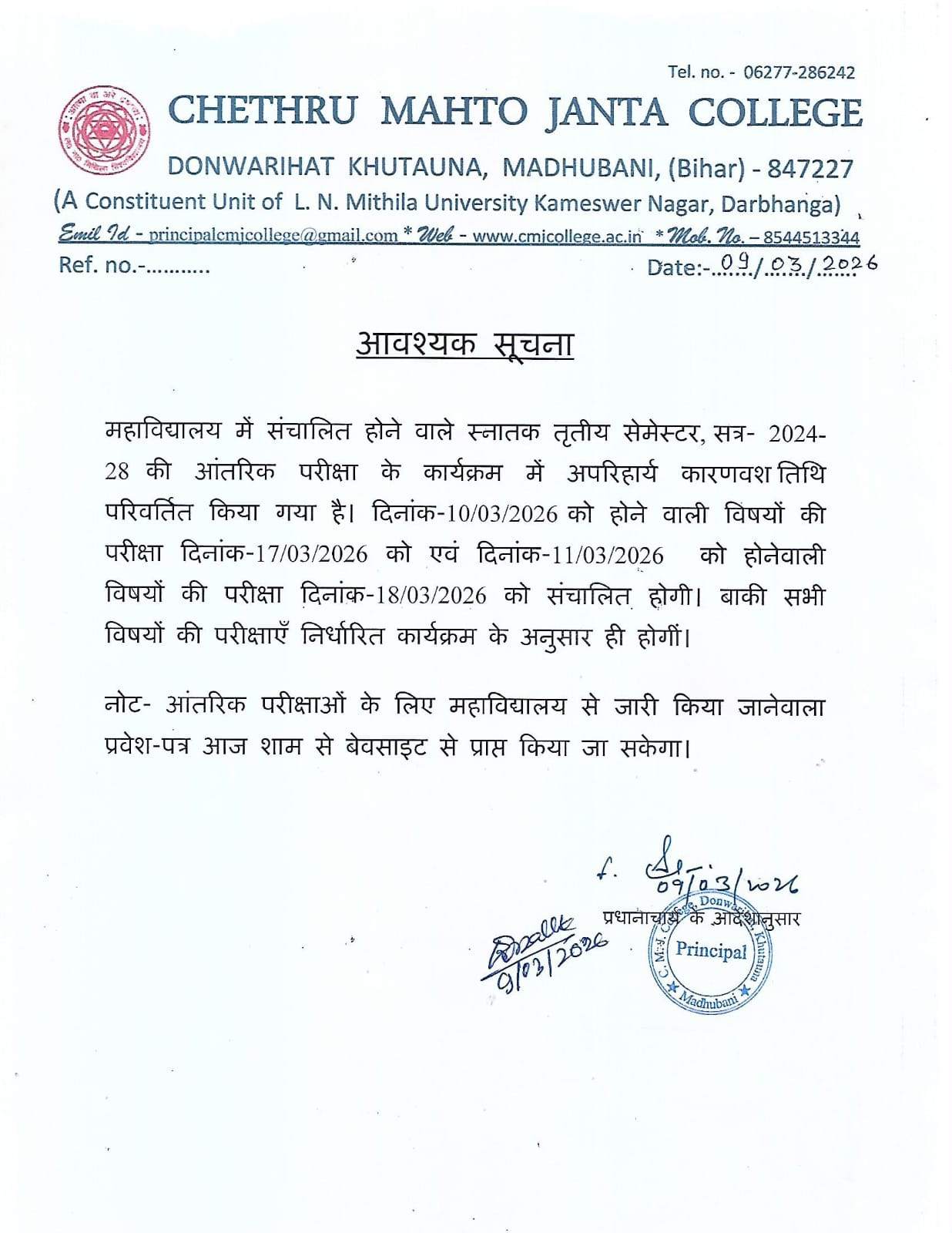NOTICE REGARDING 3RD SEM 24-28 INTENAL EXAM